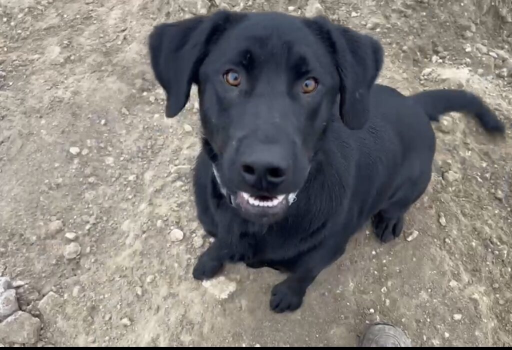Black Labrador Retriever Spur, born 07/01/2022, is an altered male who weighs 78 pounds. He is a very sweet boy who we received as a puppy from Mikey's Chance. Spur loves to play ball, but doesn't like to bring it back. He has solid recall, and down. He plays well with other dogs, is great with grooming, and good with cats.